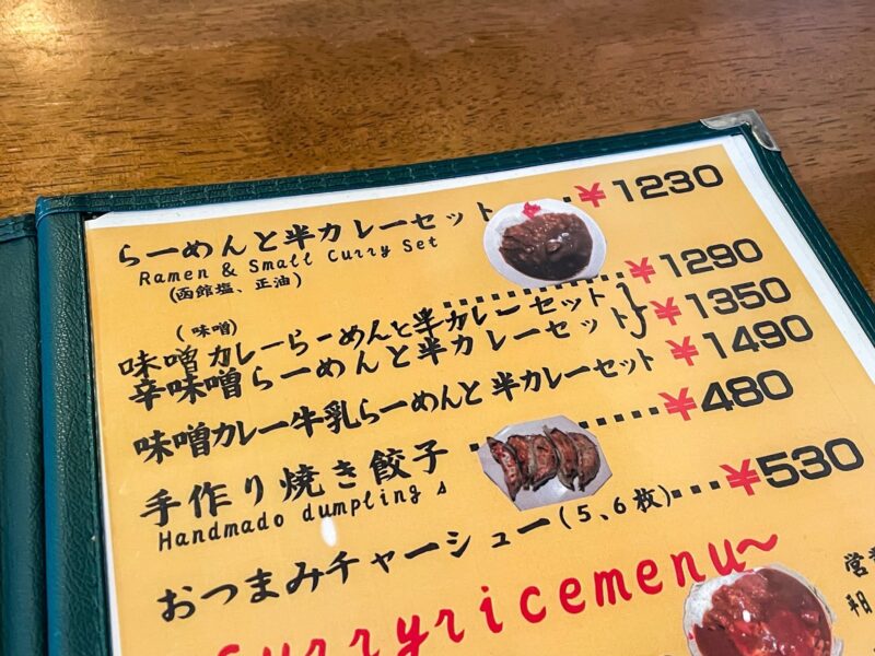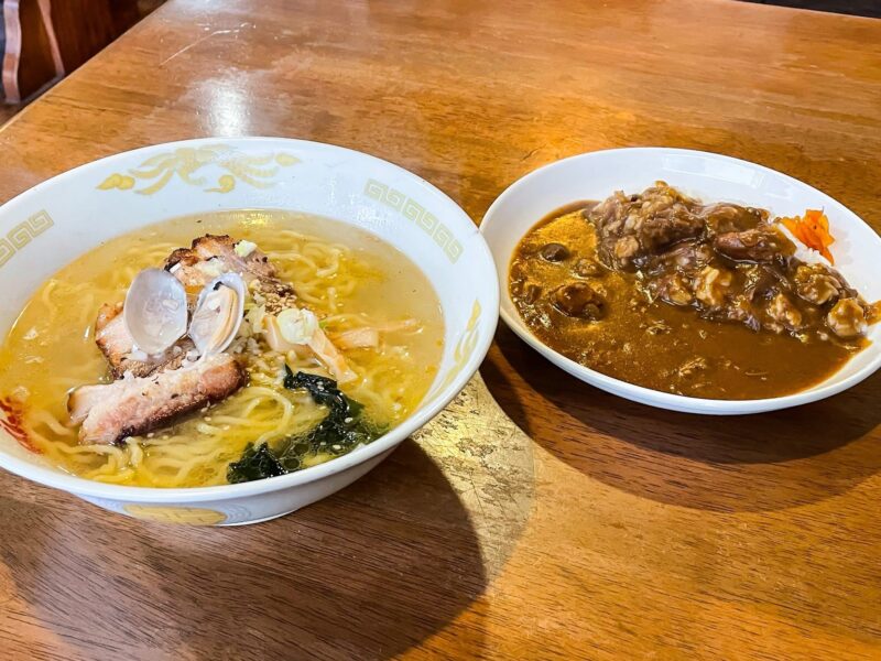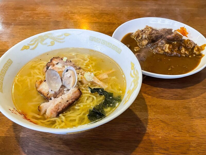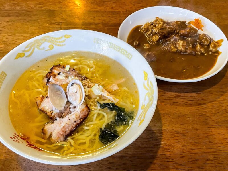 この日は、こちらでランチタイム!ラーメン屋さん巡り、今回は函館駅前の大門エリアにあるカレーもメインのラーメン屋さんのこちら!早速注文したのは、塩ラーメンと半カレーセットをチョイス!こちらは、シンプルな味わいにコクがあるスープで、中細のちぢれ麺!カレーもコクが有り美味さ抜群!ラーメンもカレーも美味しく頂き、大満足でした!こちらは、夜営業時は22時15分ラストオーダーまで営業してるので、飲んだ〆でも立ち寄れるのが有難い!タイミングが合えば是非、楽しみに伺ってみてください♪