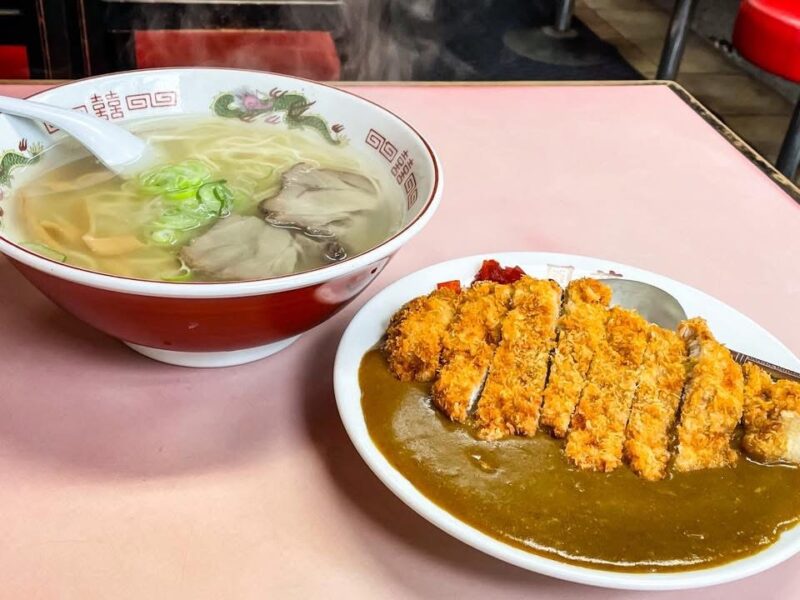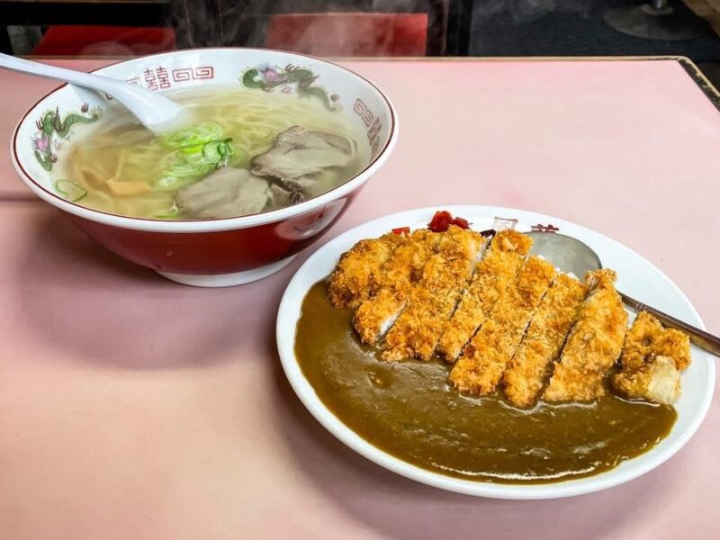 この日は千歳図書室に勉強へ向かう前に、こちらでランチタイム!瀧澤さんやオクトーバーさんなど行きつけのお店にて、観光の方々によく函館のラーメン屋さん教えてくださいと聞かれるので、ラーメンスイッチが入りリサーチ開始!お久しぶりなところから、初めましてのところなど、塩ラーメン+ α に絞って色々楽しみに回ってみようとスタートです!ということで、まずは大門にて昭和25年創業(1950年)の老舗ラーメン屋さんのこちら!早速注文したのは、カツカレーセット(塩ラーメン)をチョイス!やっぱり函館の塩ラーメンはシンプルなさっぱりとしたスープに、中細のストレート麺で決まり!カレーもスパイスの効いたカレーに、サクサクのカツがバッチリ合う!ラーメンもカレーも美味しく頂き、大満足でした!こちらは、中休みがなく通し営業してるので、遅いお昼でも立ち寄れるので有難い!タイミングが合えば是非、楽しみに伺ってみてください♪