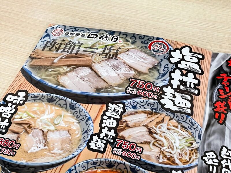 この日は、こちらでランチタイム!ラーメン屋さん巡り、今回は函館駅前の大門エリアにある老舗ラーメン屋さんの函館麺屋ゆうみん四代目のこちら!(店名もまさに四代目)早速注文したのは、塩ラーメンとお得なランチセットをチョイス!こちらは、初代同様のシンプルな優しい味わいのスープに、中細のちぢれ麺!ご飯と餃子は、お得感満載で嬉しい限り!ラーメンもランチセットも美味しく頂き、大満足でした!こちらは、中休みがなく通し営業してるので、遅いお昼でも立ち寄れるので有難い!タイミングが合えば是非、楽しみに伺ってみてください♪