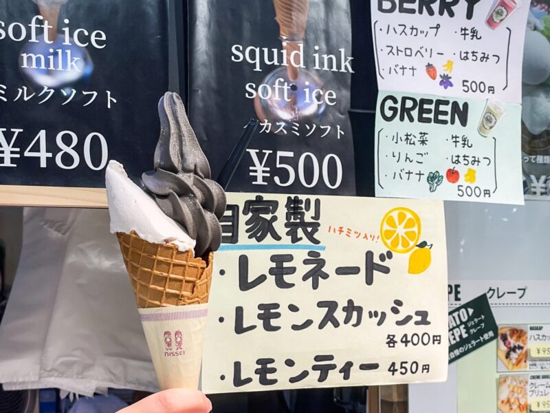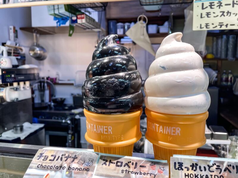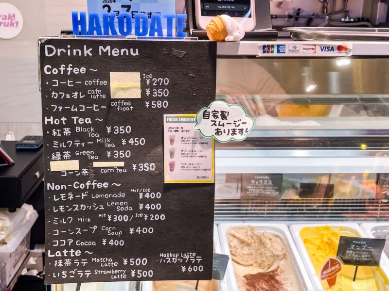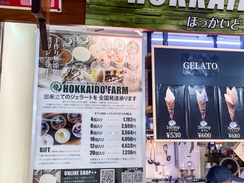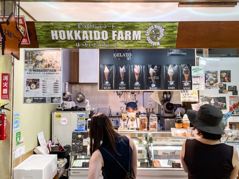 この日は、朝ジェラートへ!いつもの十字屋コーヒーも一緒に!と思ったら、店やってないし!(笑)こちらは、ジェラートの種類が豊富過ぎて、どれもこれも食べたいから迷いまくり!(笑)早速注文したのは、イカスミソフトと函館ワイン年輪(赤)ジェラートのミックスをチョイス!イカスミの濃厚な味わいに、函館ワインのサッパリとした甘さ、どちらも美味いし丁度良いバランスのハーモニー♪ボリュームも有り、大満足な逸品達でした!次回からは、十字屋コーヒーがやってなくても、ジェラート屋さんがやってたら全く問題無いね!ということで(笑)、朝市に訪れる楽しみが増えたのは、本当に嬉しい限り!また美味しいジェラート食べに、ふらっと楽しみに伺いたいと思います♪