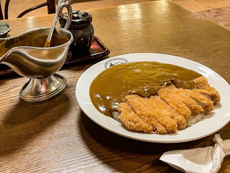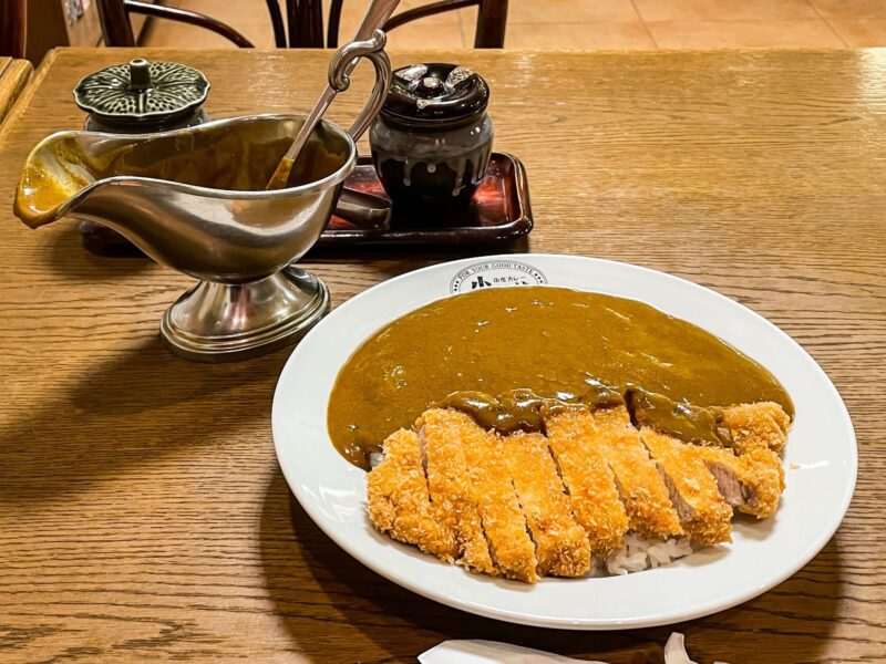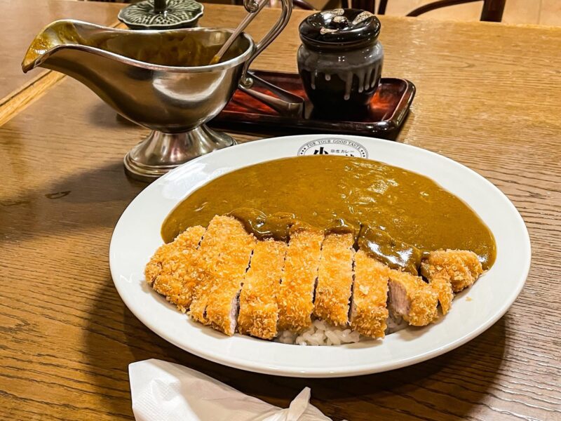 この日は、目的地に行く前に腹ごしらえ!年末だったので、日にちも時間もギリギリ開いてて良かった!早速注文したのは、2025カレー食べ納めにて2026は勝つぞ!という思いを込めて、カツカレーをチョイス!こちらはカレーポットを使用するので、老舗カレー店のレトロさが嬉しい♪揚げたてサクサクのカツに、ルーカレーをどろっと掛け合わせて頂く、これが格段に美味さを一層感じる!カレーはスパイシーでコクのある風味、そして昔懐かしい味わいでお腹いっぱい大満足でした♪2026も、ふらっと訪れよっと♪