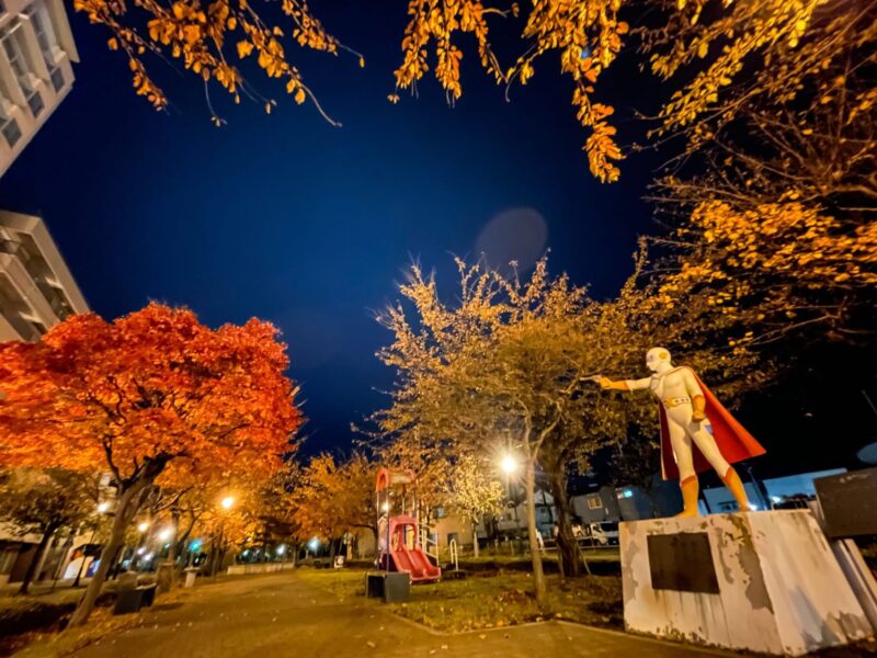 「 月光仮面に挨拶の前に紅葉 」