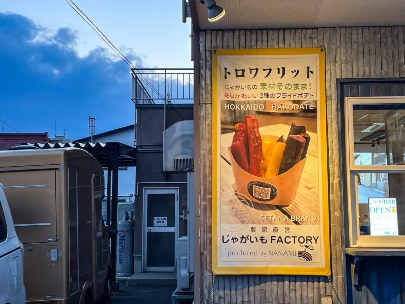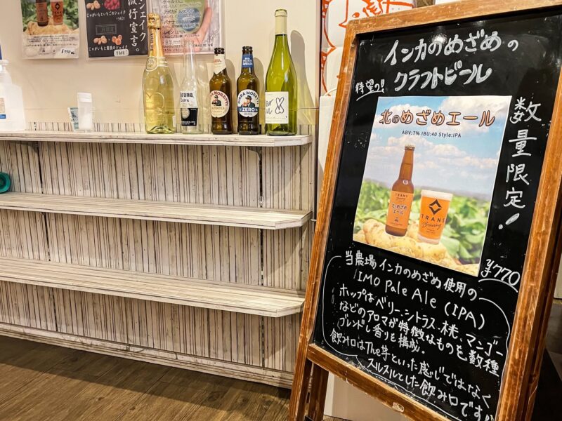 この日は、お初のこちらで一杯!せたな町産の数十種類のじゃがいもの量り売り、カラフルなポテトチップス、ポテトサラダやじゃがいもソフトのテイクアウト専門店!そんなじゃがいも専門店のこちらは現在、週末は夜営業を行なっています!じゃがいも料理の他に、同じくせたな町にて養豚農家で育てたブランド豚の若松ポークマンが食べられたり、北のめざめエールは北海道の「TRANS BREWING(トランスブリューイング)」が醸造(共同開発)する、これまたせたな町産インカのめざめ(じゃがいも)を使用したIPA(クラフトビール)が飲めたり出来ちゃう、美味しい楽しい夜の時間を提供しています♪この日の若松ポークマンを使用した料理は、スペアリブ!柔らかくてジューシーで、美味いのなんのって!北のめざめエールは、じゃがいものコクと甘みがポップの苦味を和らげ、スッキリした喉越しで美味い!店主さんと談笑しながら、料理もビールも捗ります♪そんな北海道の大地の恵みをたっぷり味わいたい方は是非、snsを要チェックして楽しみに訪れてみてください!