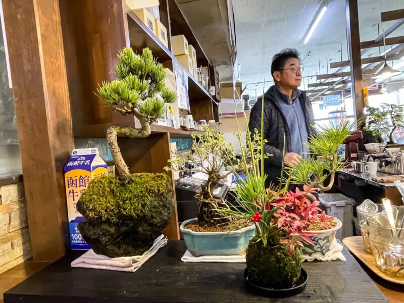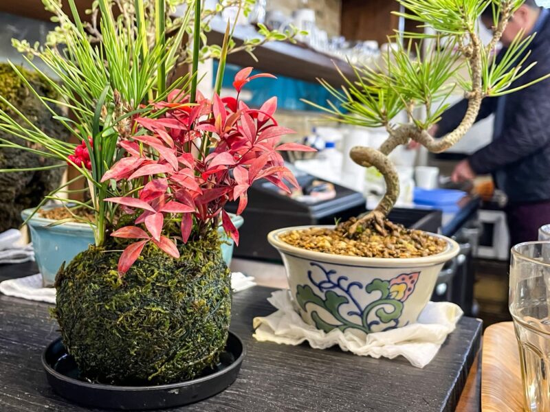 この日は朝から充実した時間を過ごし、モーニングティータイムにこちらへ♪最近お気に入りの、老舗梶原昆布店の昆布茶とトラピストクッキーのセットをチョイス!昆布茶は染み入る美味さで、んもう身体に良いに決まってる!そして、盆栽に囲まれながらの、癒しのひと時でした♪