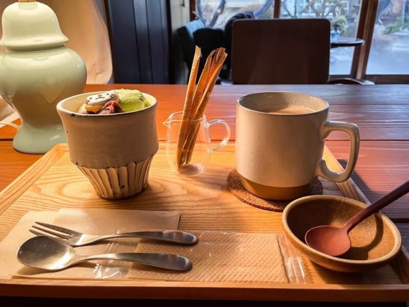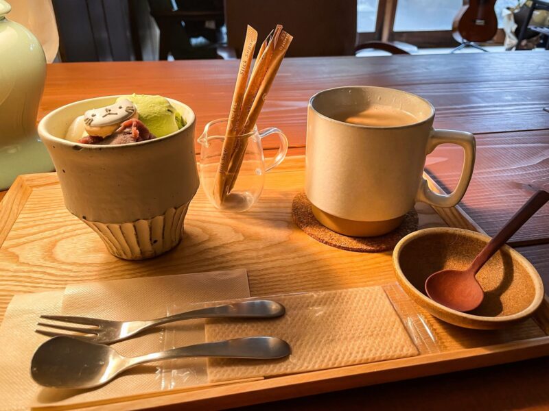 この日は、ティータイムに昨年オープンしたこちらへ!ランチやティータイムが出来るこちらは、アイシングクッキーの販売なども行なっているカフェ!早速注文したのは、ミニ和パフェとお好きな飲み物のセットでチャイをチョイス!プリもちの白玉がふんだん入った和パフェは、味わいも抹茶アイスのさらりとした甘味と相まって美味い!アイシングクッキーも可愛くて、食べるのにも躊躇しそうなくらい!いや、がっつり食べちゃいますけど!(笑)チャイと一緒に美味しく頂き、大満足でした♪風情のある中庭を眺めながら、まったりと過ごせて最GO!!に癒されました♪店主ご夫妻は楽器もやってるいるので、音楽話に花を咲かせたい方も是非、立ち寄ってみてください♪次回はランチも楽しみに、訪れようと思います!