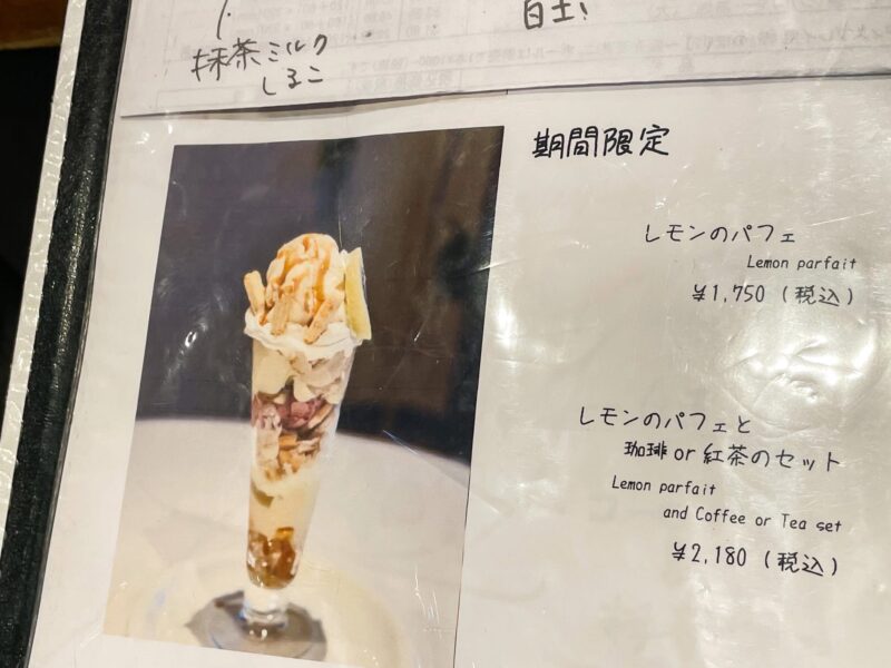 この日のティータイムは、久しぶりにこちら!早速注文したのは、期間限定のレモンのパフェと自家焙煎珈琲をチョイス!いつ来ても変わらず美味い、期間限定のパフェ!レモンを使った様々なスィーツ調理を施し、いろんなトッピングと味わいが重なり、美味しさが倍の倍の倍!美味しく頂き、大満足でした♪そしてお供の、これまた美味しい珈琲を頂きながらまったりと♪いつ来ても変わらず、美味しく癒しのひと時でした♪